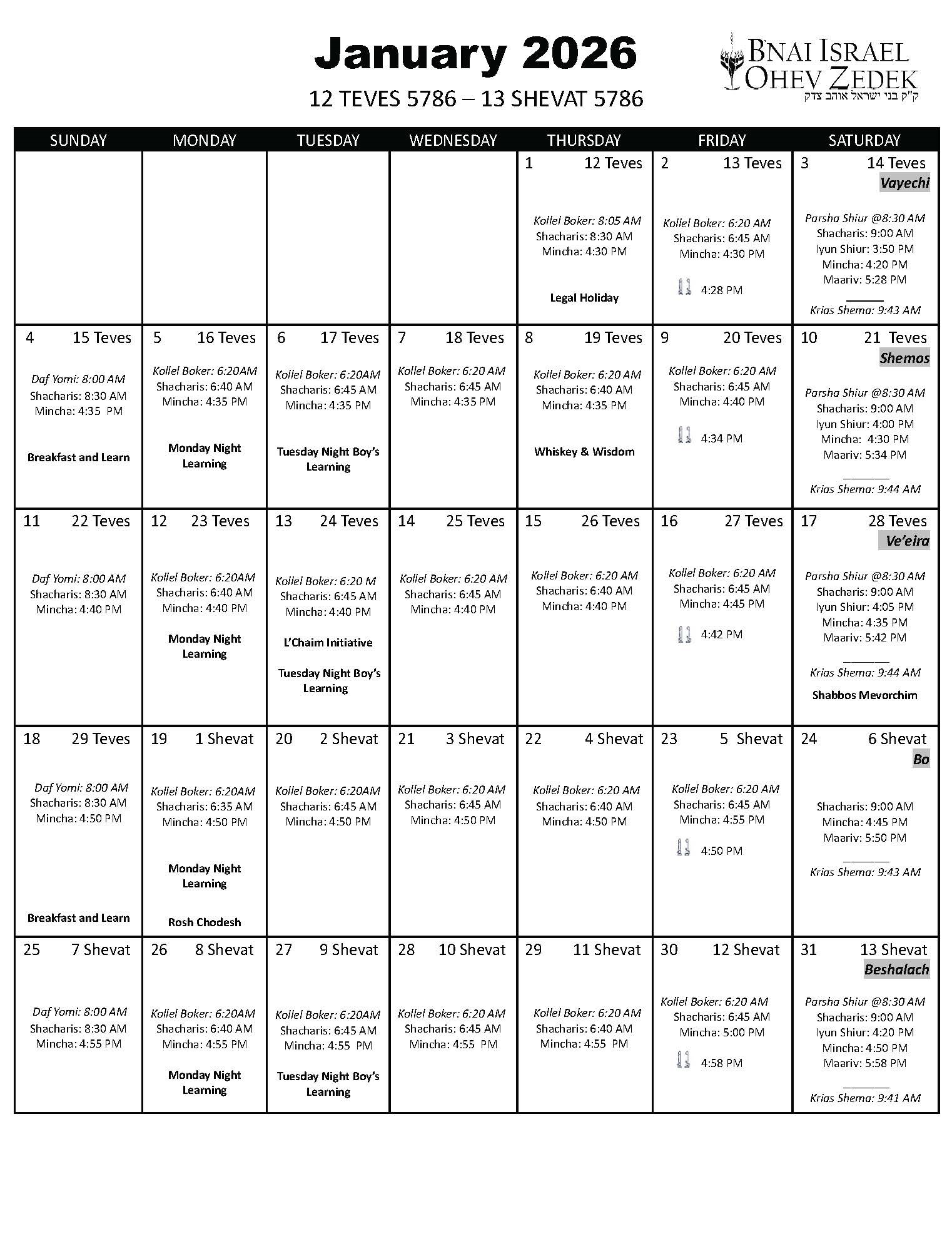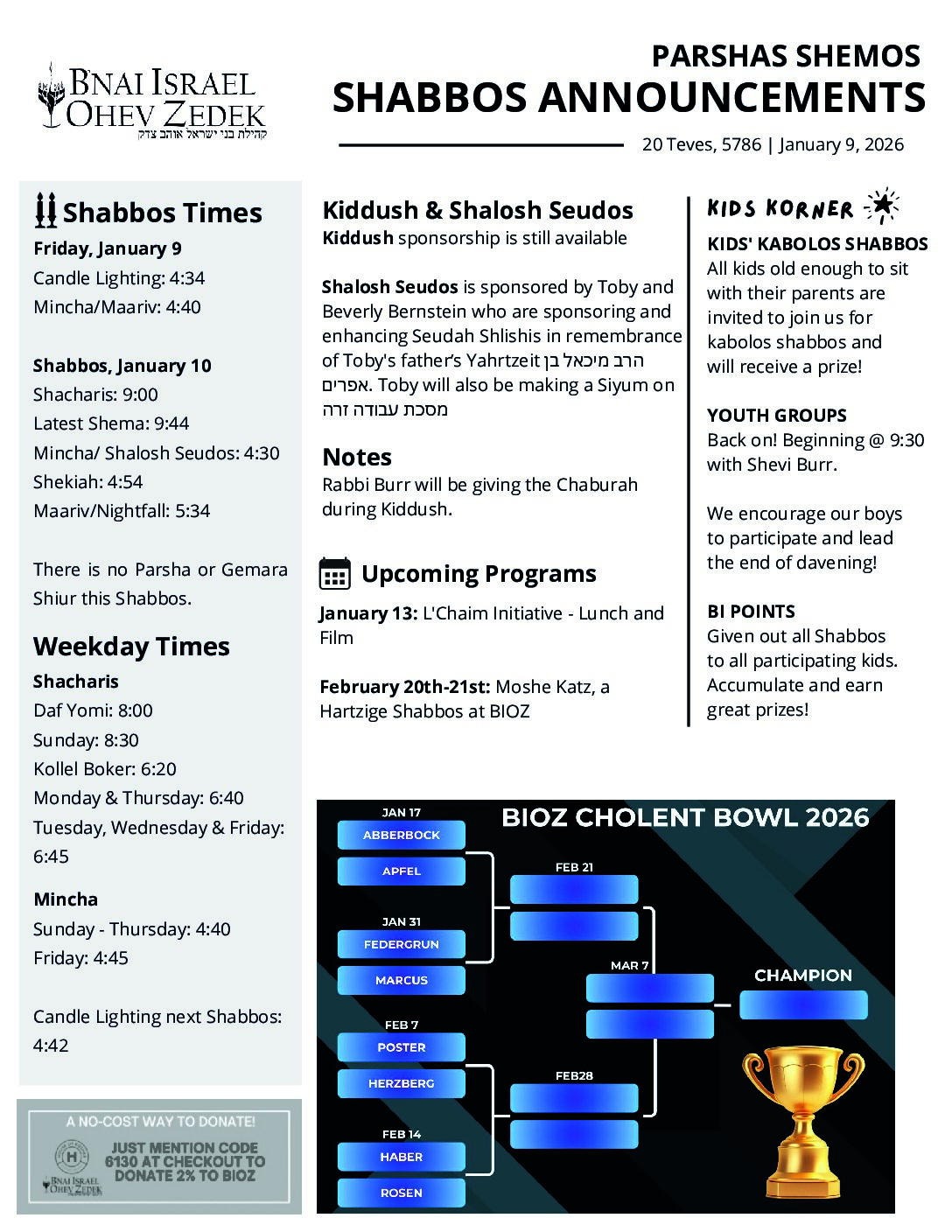 Shabbos, January 10